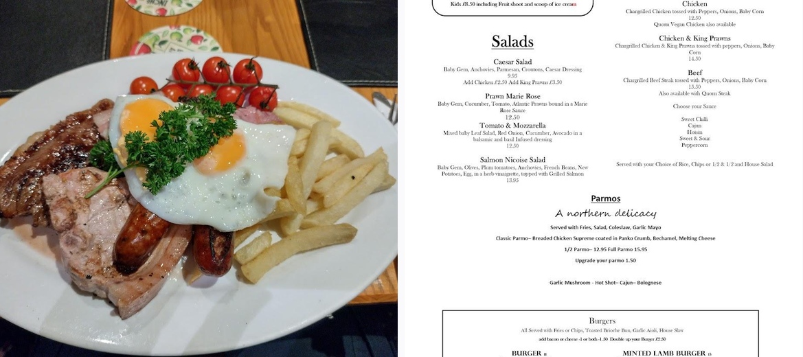 What can I say! Wow! Came by chance on a Wednesday apprehensive in remembering how poor service I had received previously, but really glad to find out that new owners have transformed the atmosphere and menu. Steak night is amazing value at £24 for 2 steaks and a drink! Food was well presented, high quality beef and very well cooked and prepared. Will definitely be back to try the fantastic looking burgers and parmos! Thanks